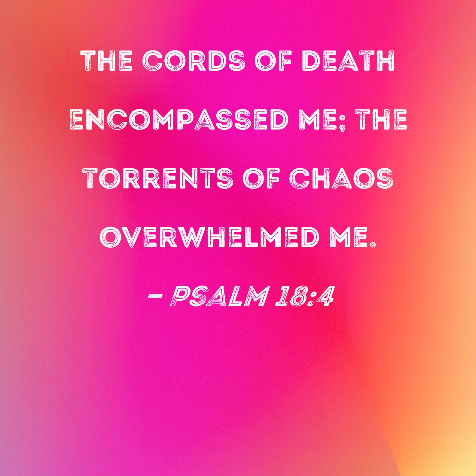 Psalm 18:4 The cords of death encompassed me; the torrents of chaos overwhelmed me.