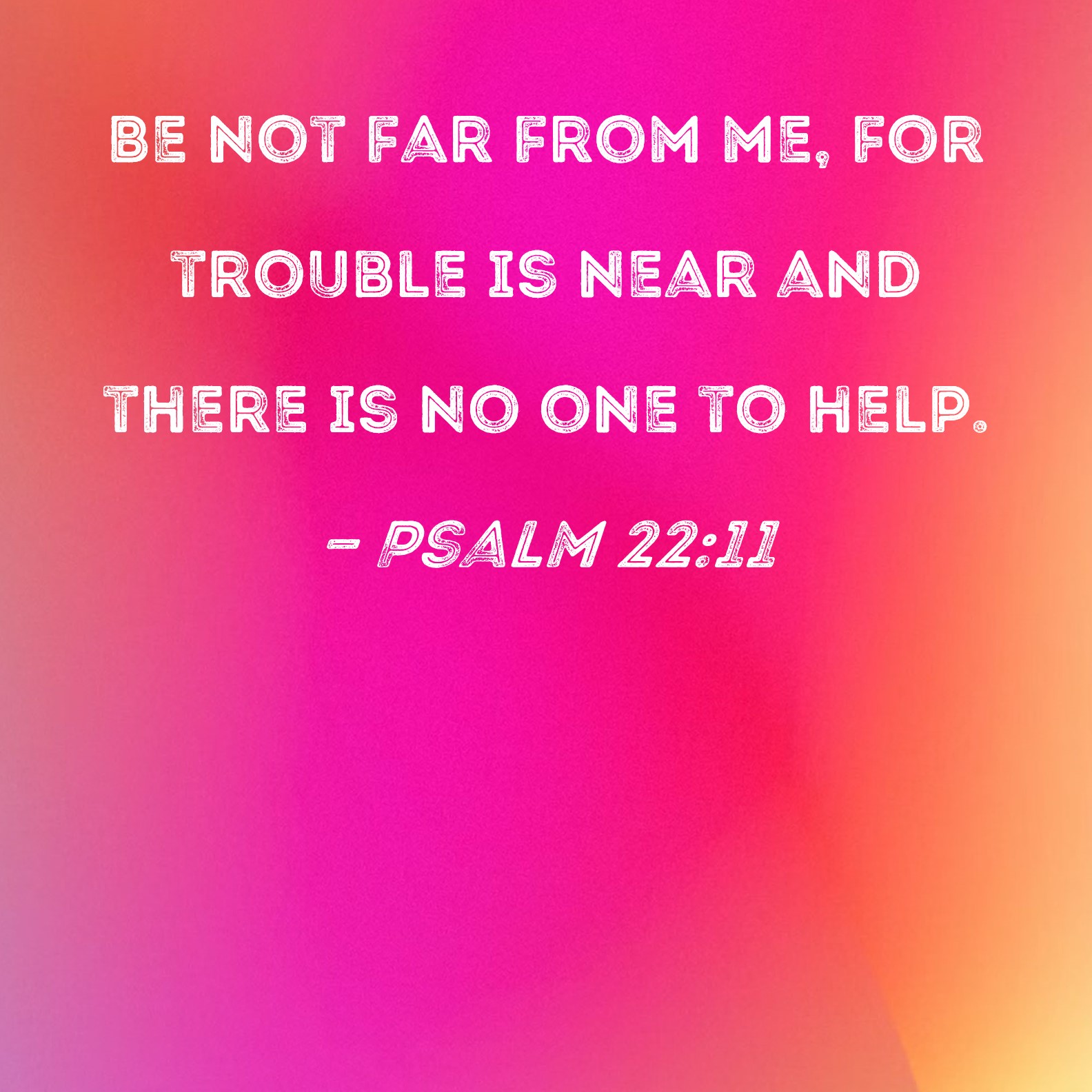 Psalm 22:11 Be not far from me, for trouble is near and there is no one to help.