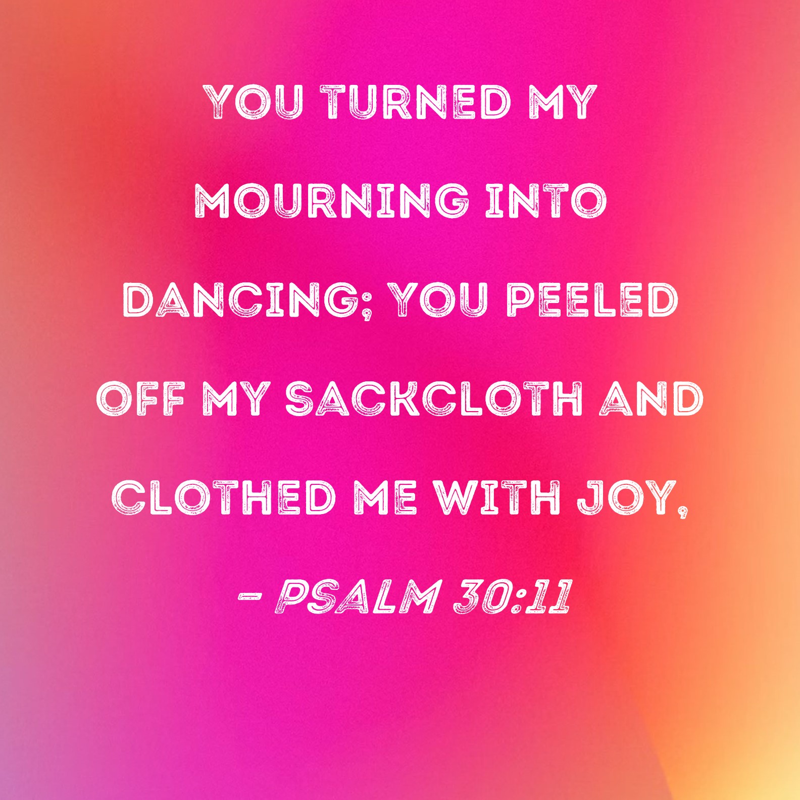 Psalm 30:11 You turned my mourning into dancing; You peeled off my sackcloth and clothed me with joy,