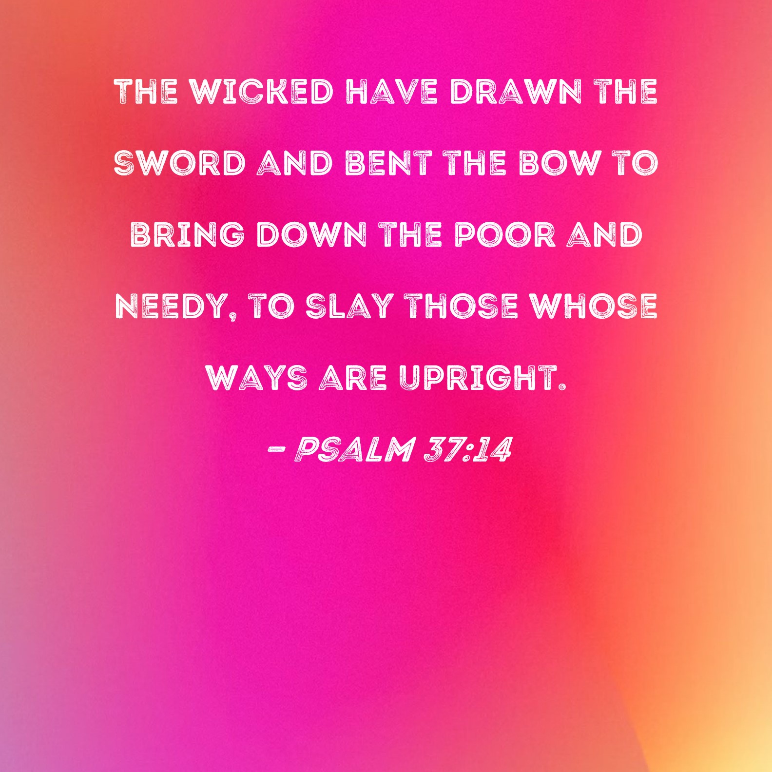 Psalm 37:14 The wicked have drawn the sword and bent the bow to bring down the poor and needy, to slay those whose ways are upright.