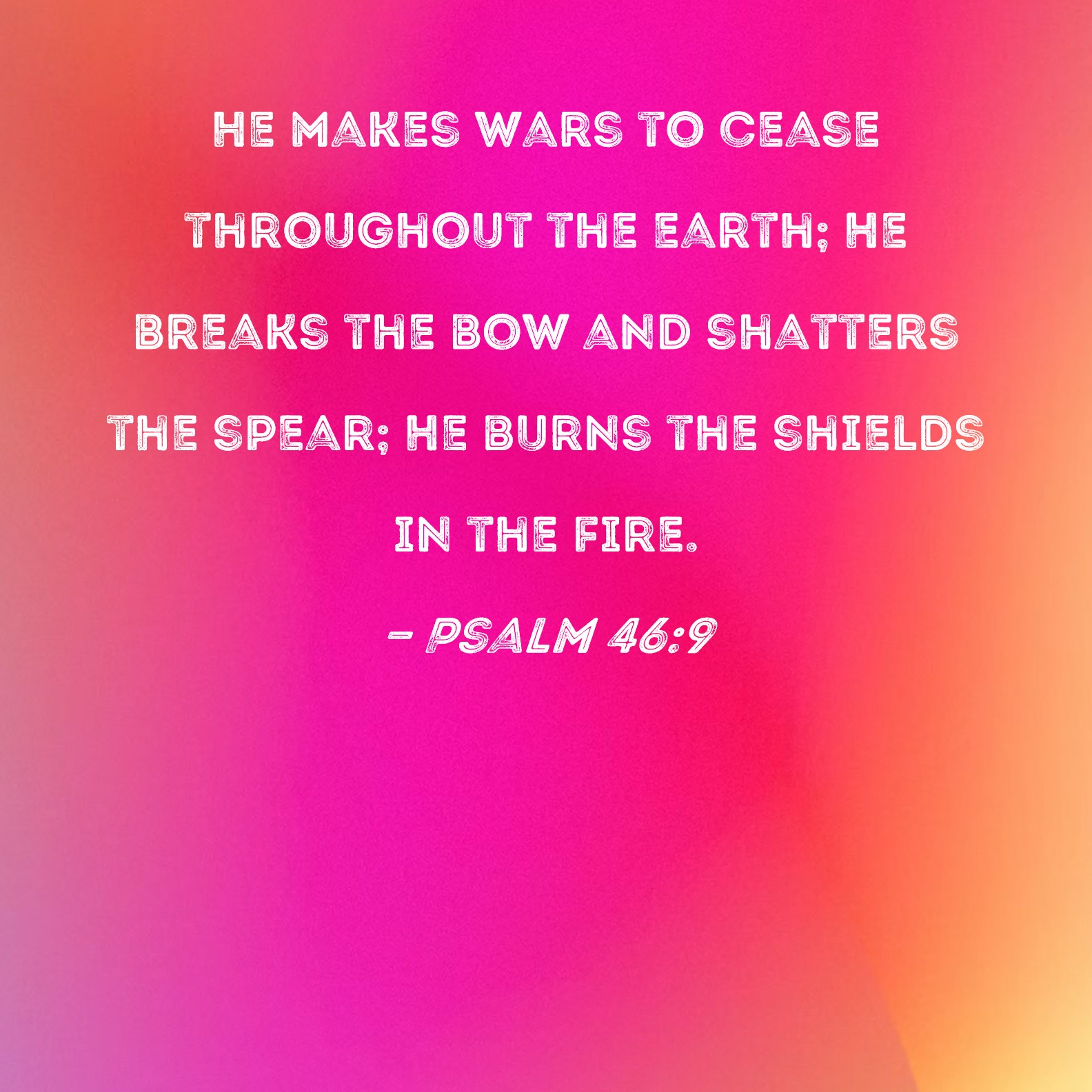 Psalm 46:9 He makes wars to cease throughout the earth; He breaks the bow and shatters the spear; He burns the shields in the fire.