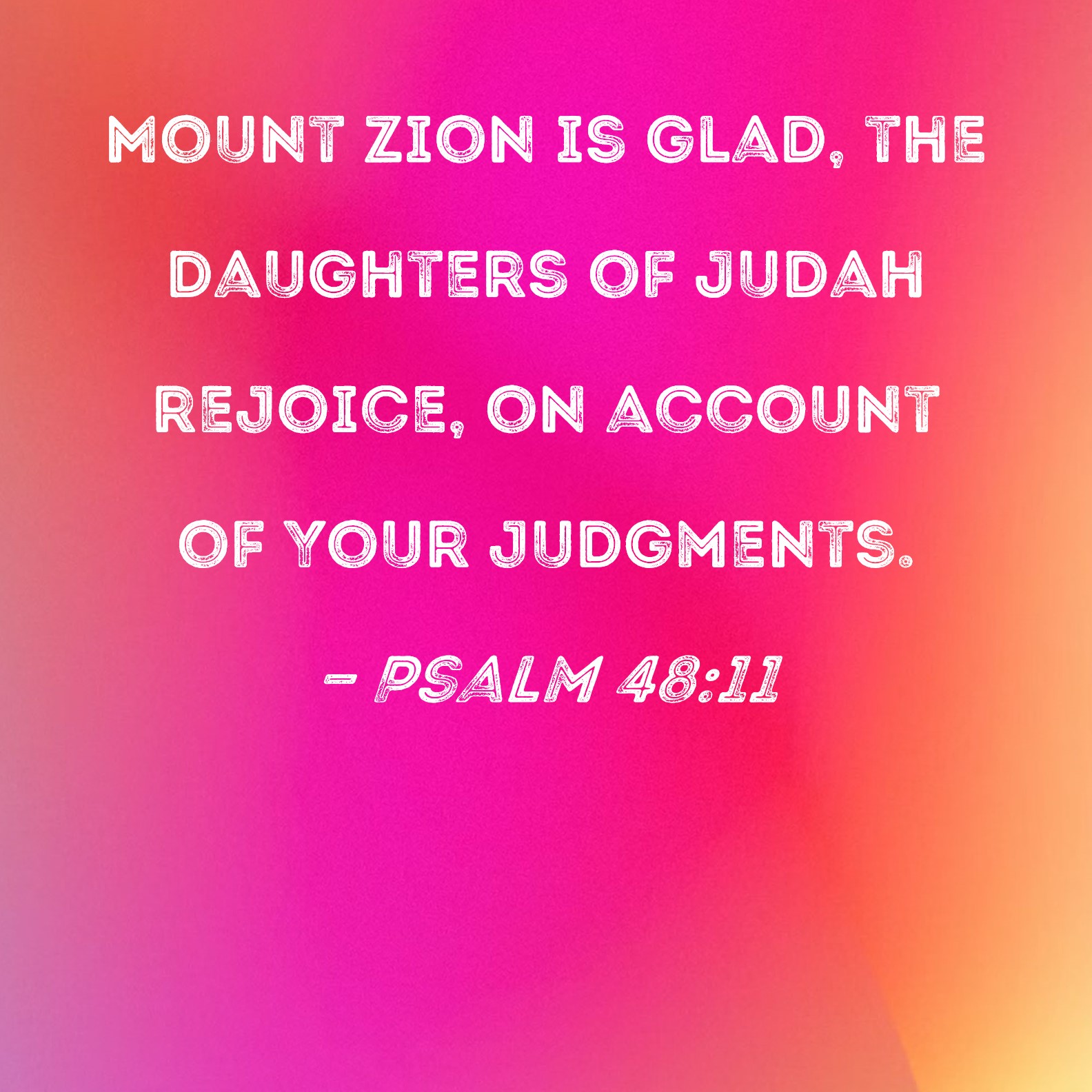 Psalm 48:11 Mount Zion is glad, the daughters of Judah rejoice, on account of Your judgments.