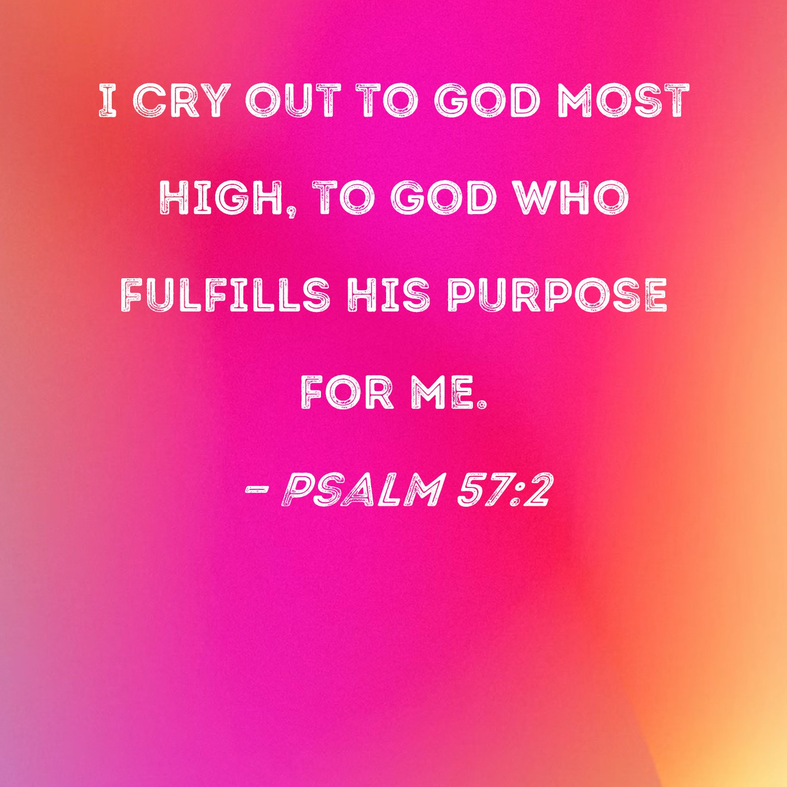 Psalm 57:2 I cry out to God Most High, to God who fulfills His purpose for me.