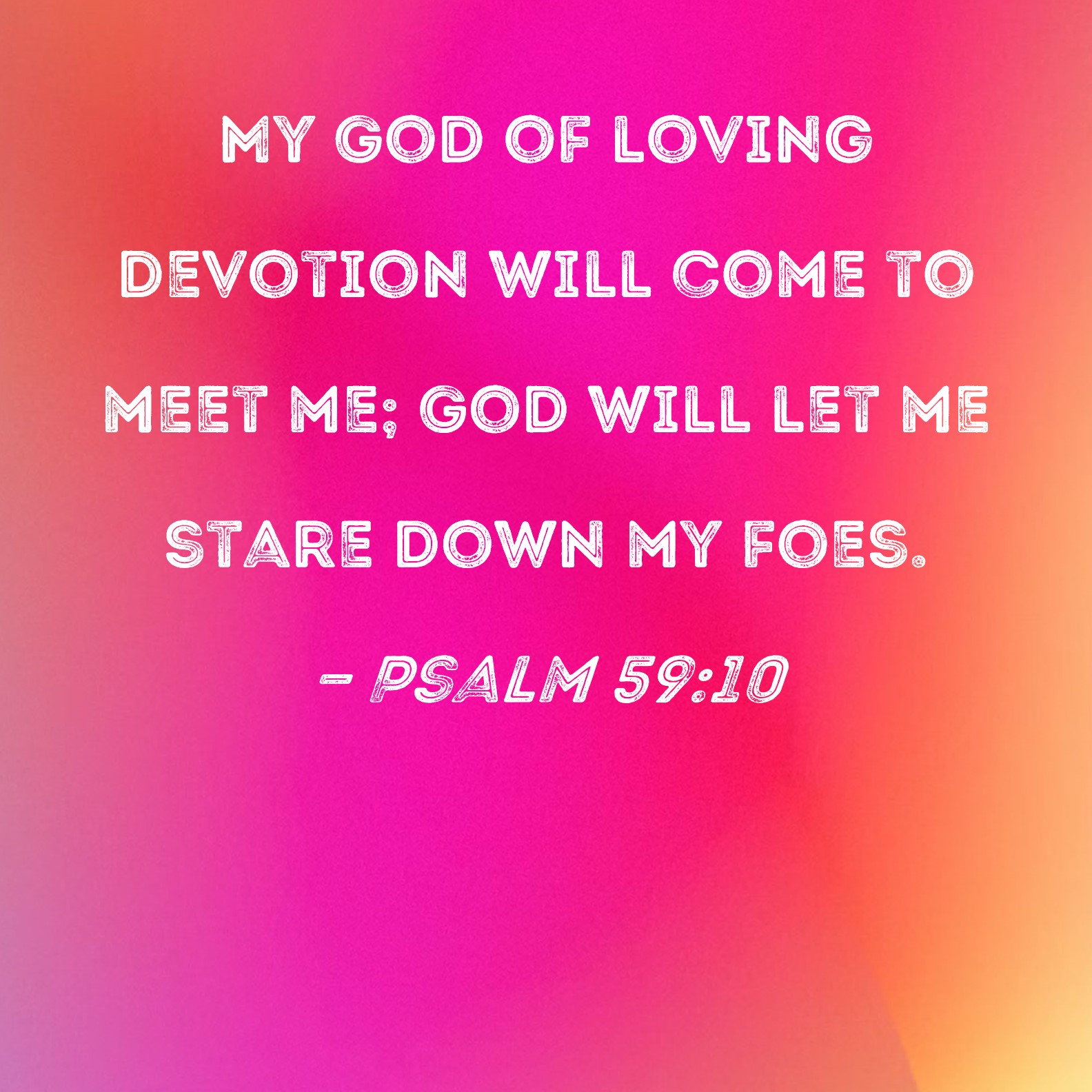 Psalm 59:10 My God of loving devotion will come to meet me; God will let me stare down my foes.