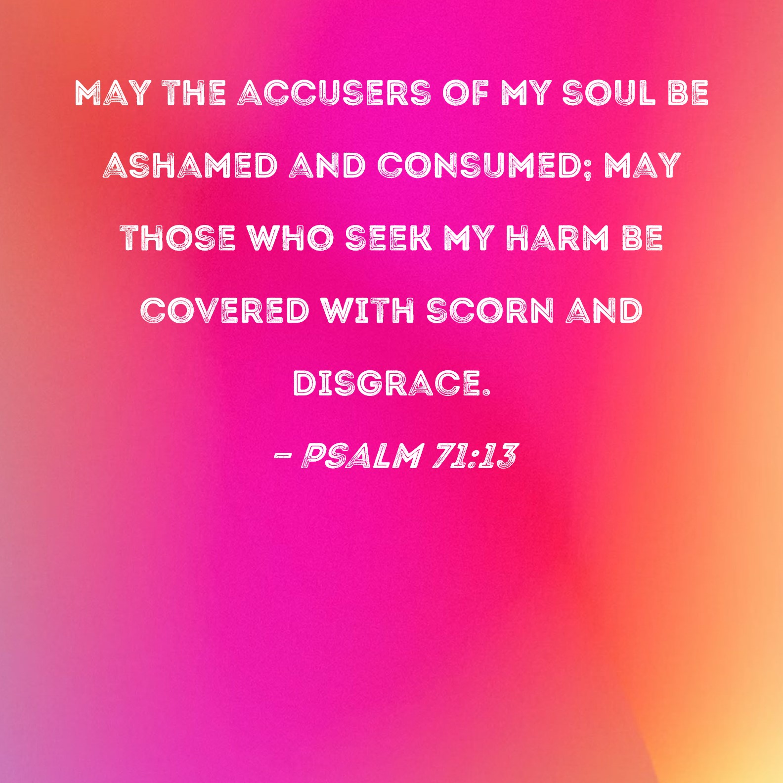 Psalm 71:13 May the accusers of my soul be ashamed and consumed; may those who seek my harm be covered with scorn and disgrace.