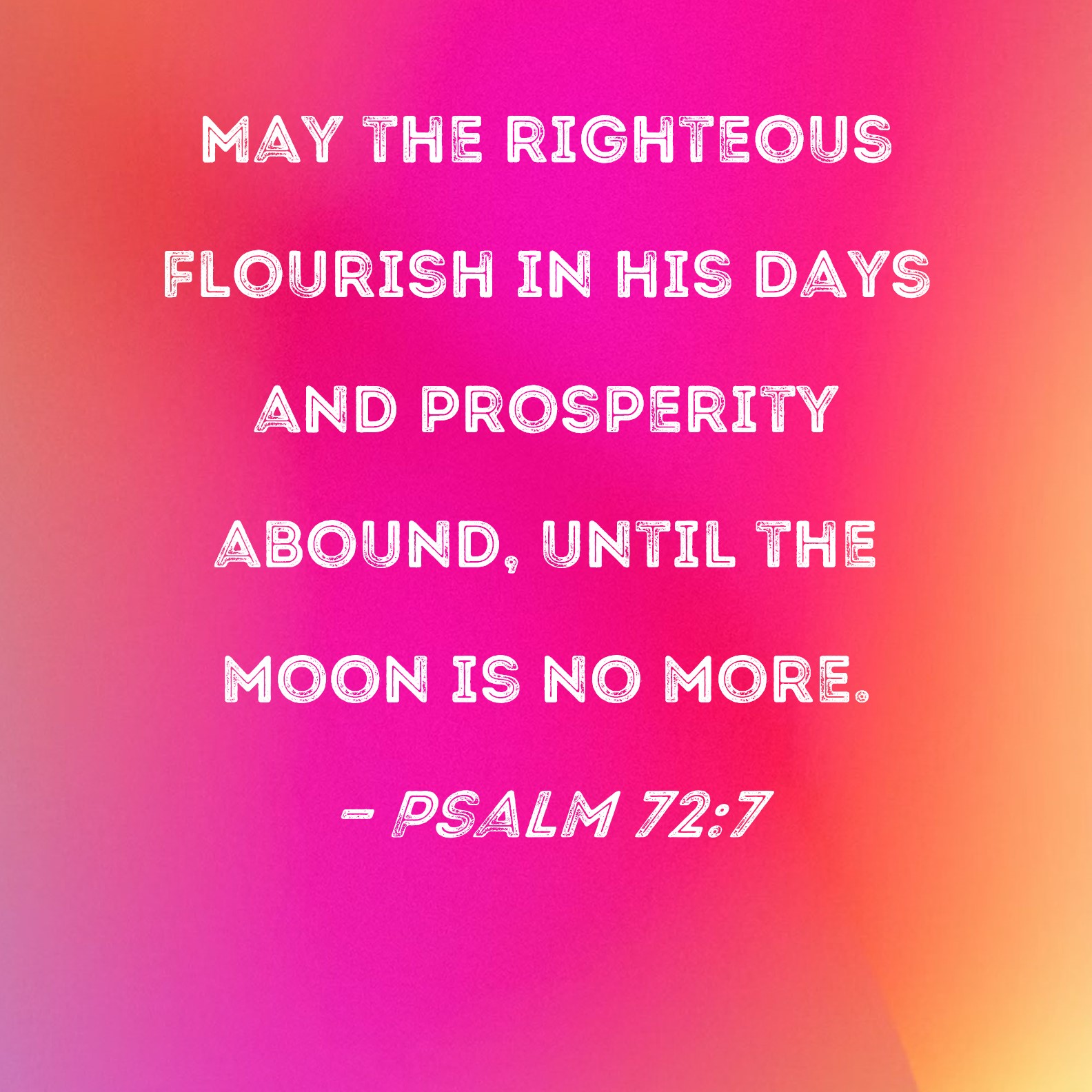 Psalm 72:7 May the righteous flourish in his days and prosperity abound, until the moon is no more.