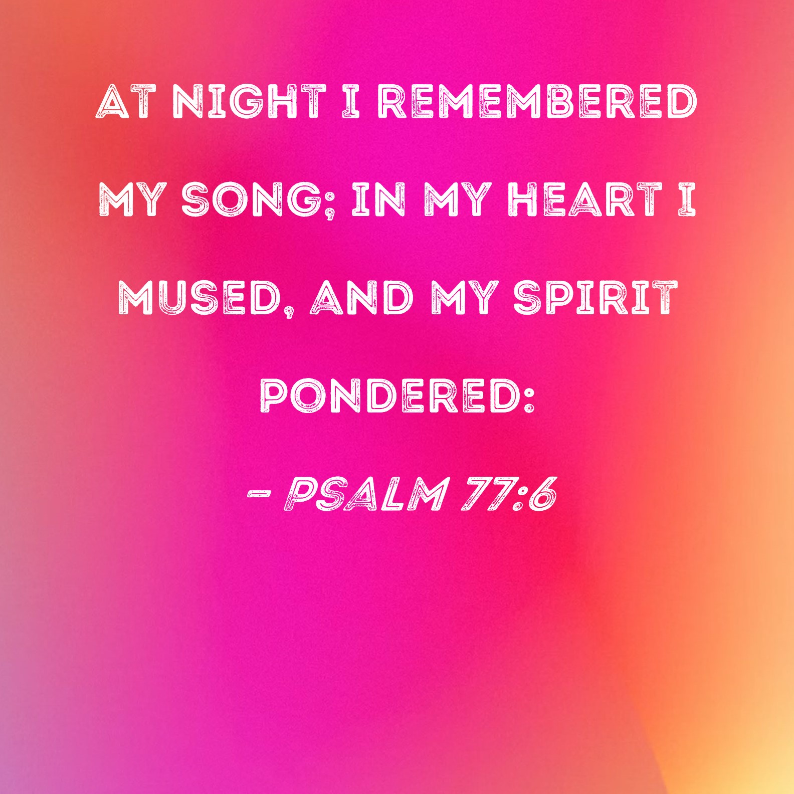 Psalm 77:6 At night I remembered my song; in my heart I mused, and my spirit pondered: