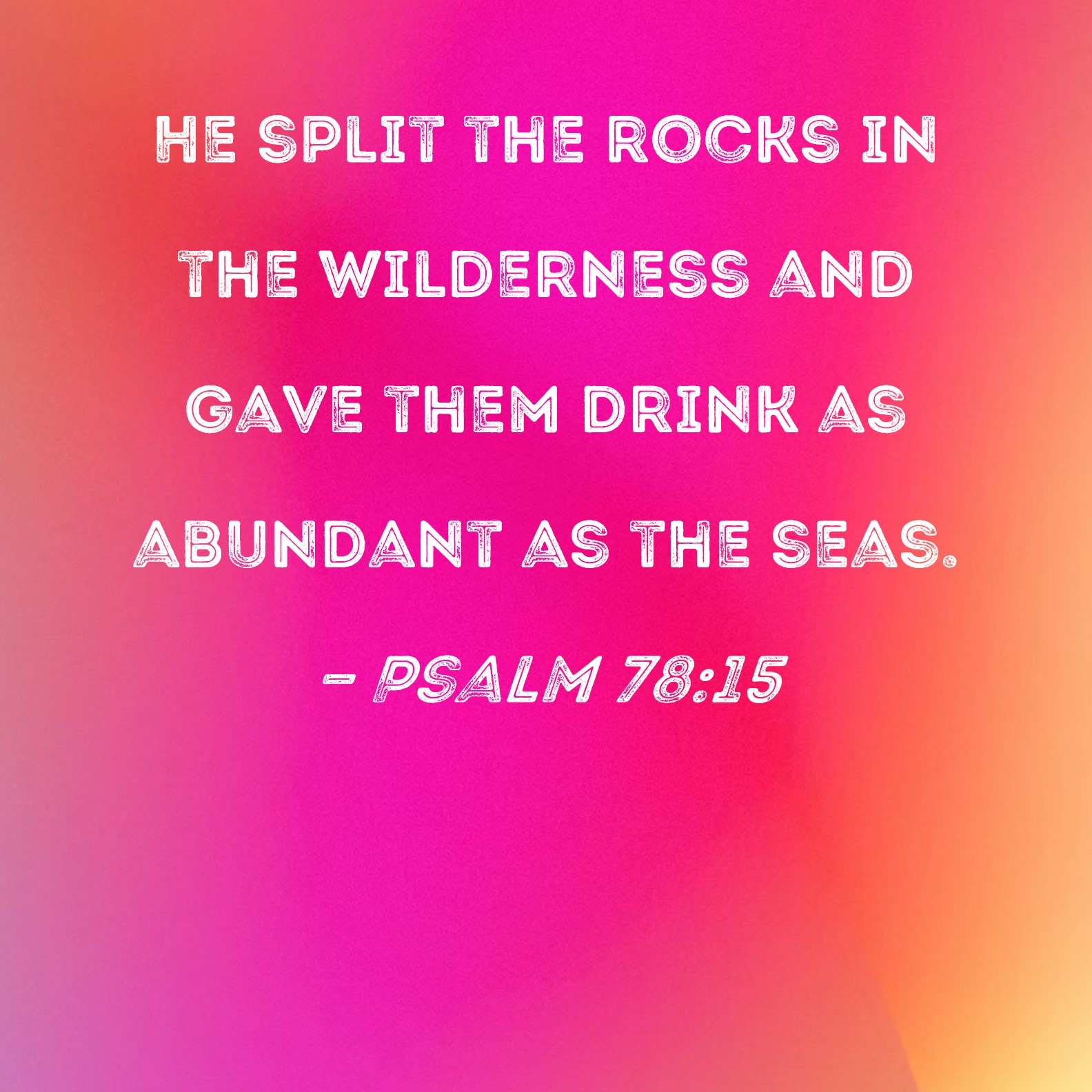 Psalm 78:15 He split the rocks in the wilderness and gave them drink as abundant as the seas.