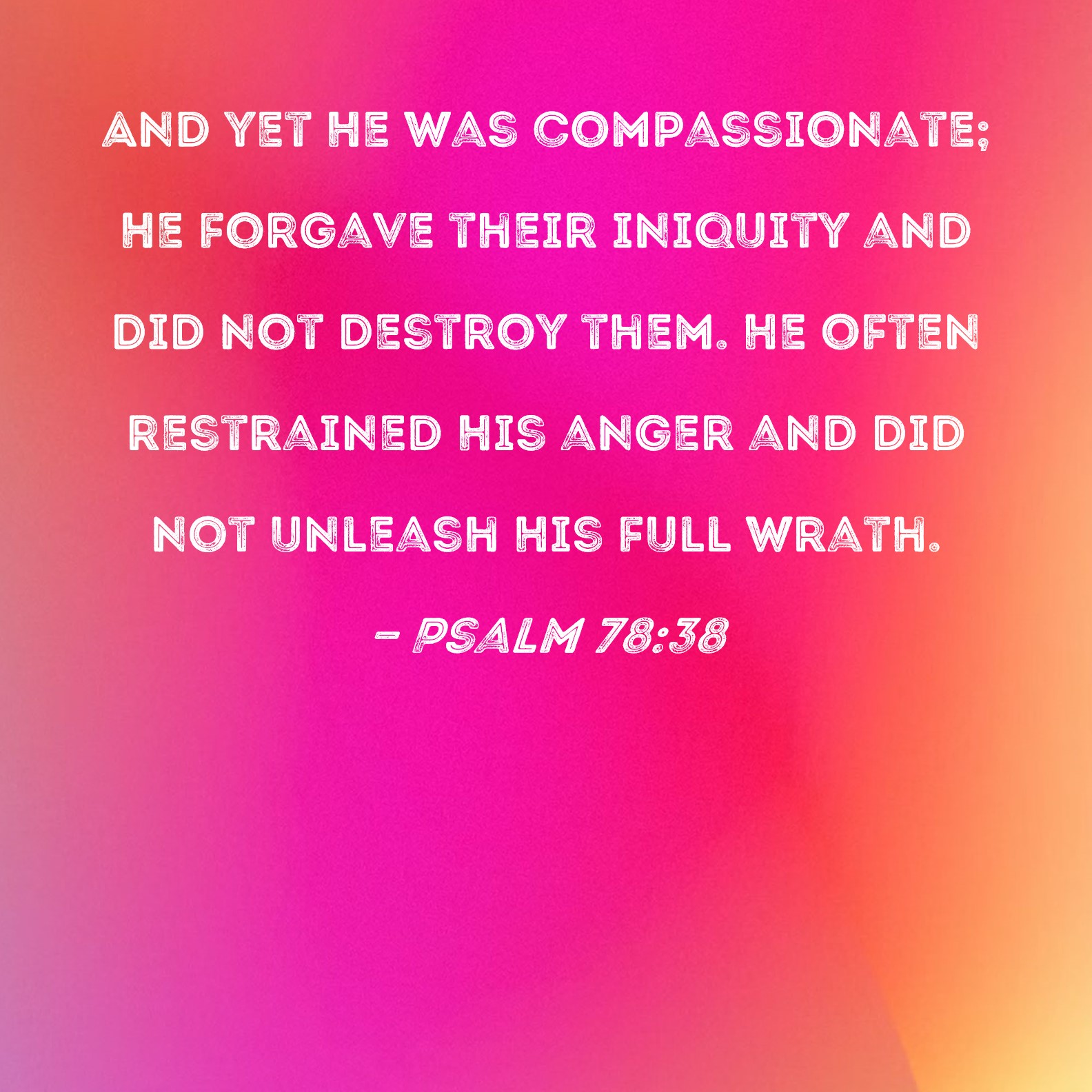 Psalm 78:38 And yet He was compassionate; He forgave their iniquity and did not destroy them. He often restrained His anger and did not unleash His full wrath.