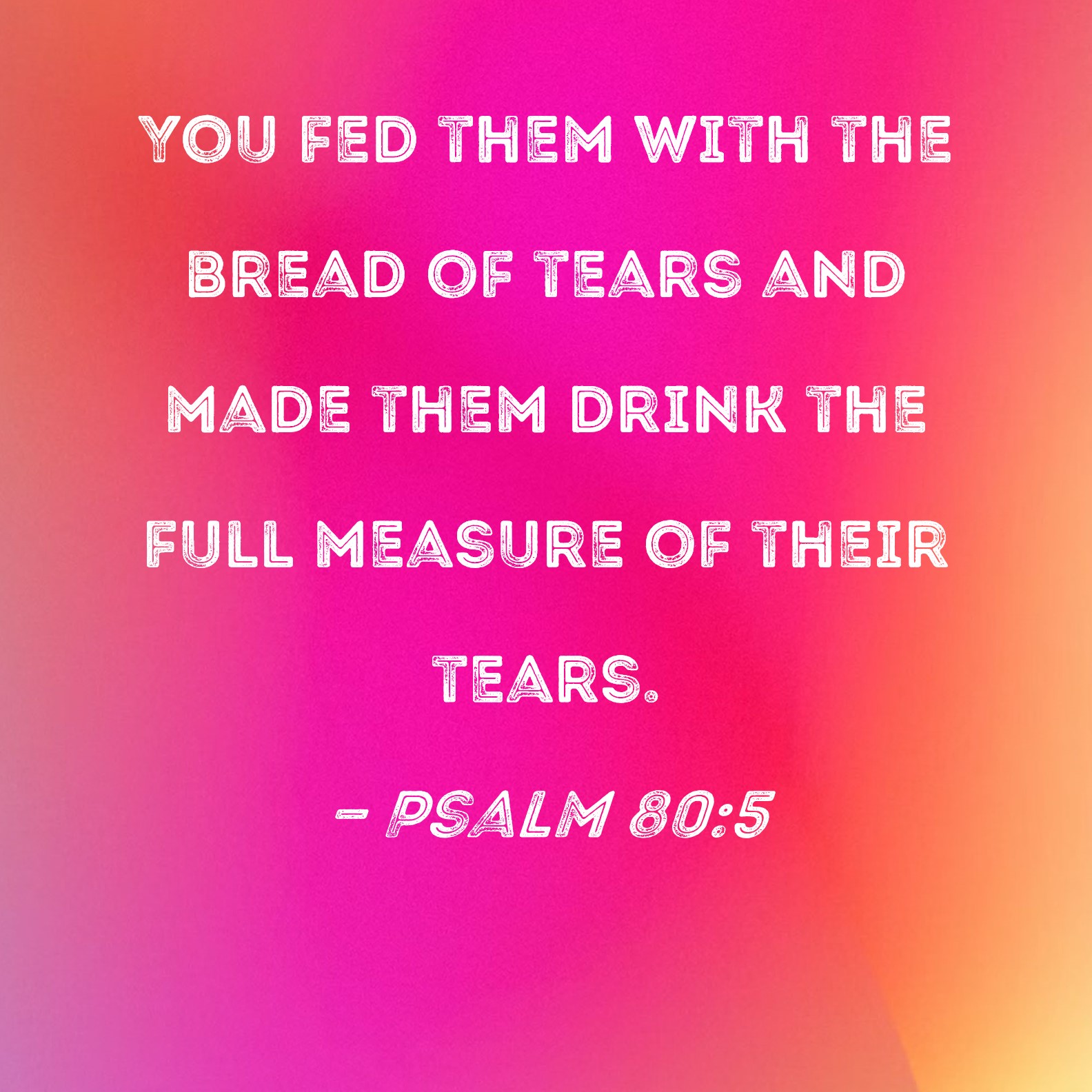 Psalm 80:5 You fed them with the bread of tears and made them drink the full measure of their tears.