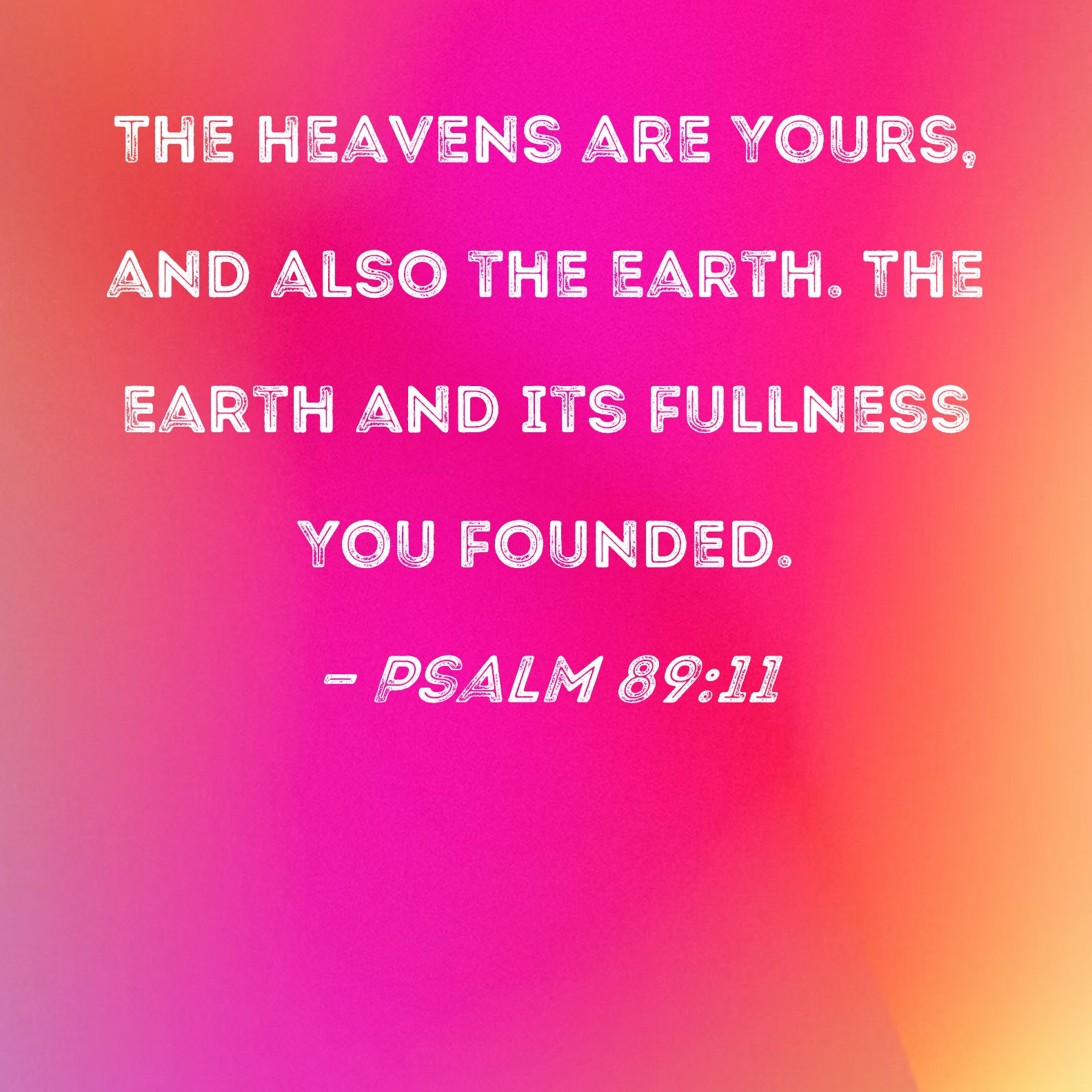Psalm 89:11 The heavens are Yours, and also the earth. The earth and its fullness You founded.
