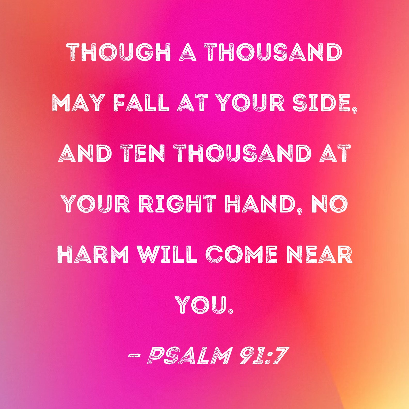 Psalm 91:7 Though a thousand may fall at your side, and ten thousand at your right hand, no harm will come near you.