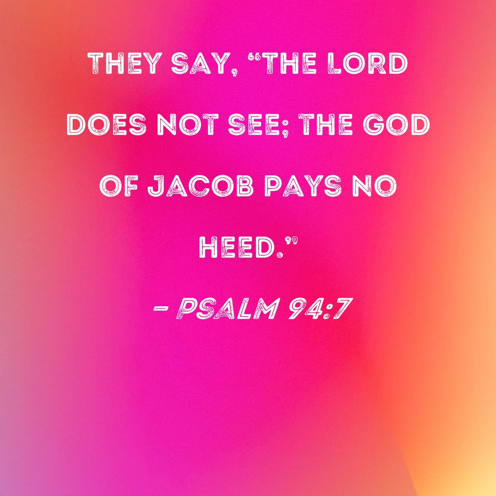 Psalm 94:7 They say, "The LORD does not see; the God of Jacob pays no heed."