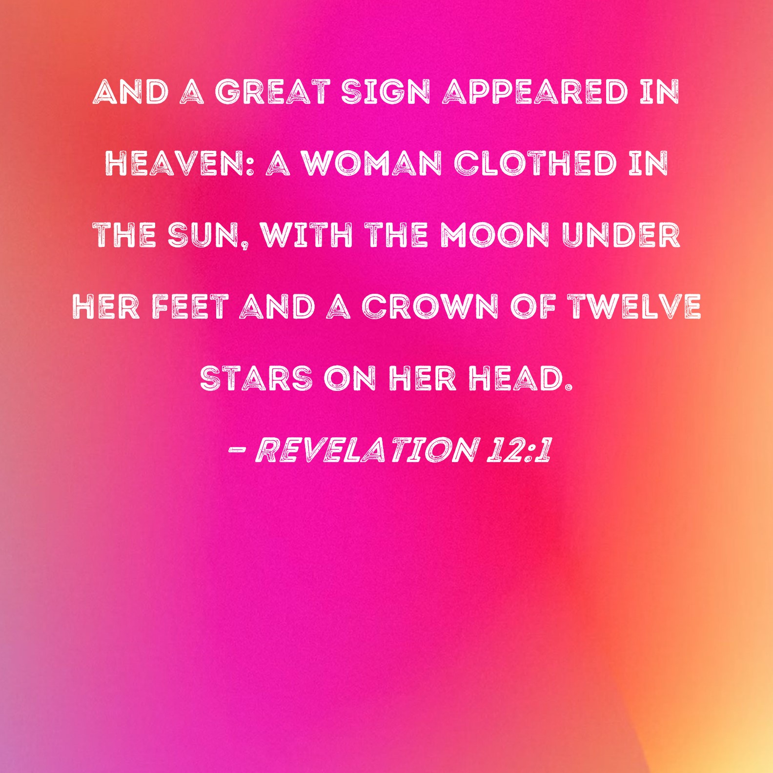 Revelation 12:1 And a great sign appeared in heaven: a woman clothed in the sun, with the moon under her feet and a crown of twelve stars on her head.