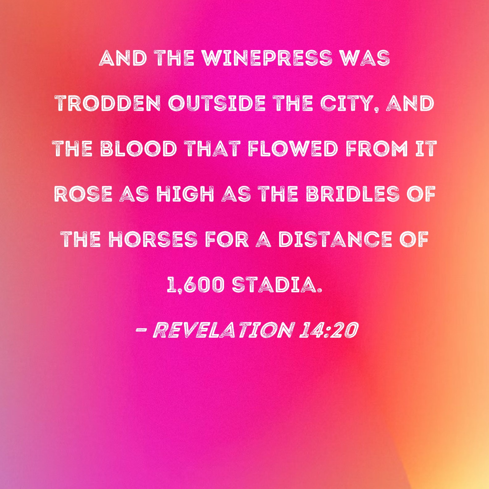 Revelation 14:20 And the winepress was trodden outside the city, and the blood that flowed from it rose as high as the bridles of the horses for a distance of 1,600 stadia.