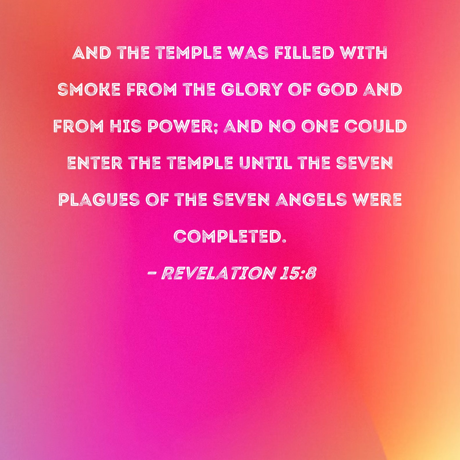 Revelation 15:8 And the temple was filled with smoke from the glory of God and from His power; and no one could enter the temple until the seven plagues of the seven angels were completed.