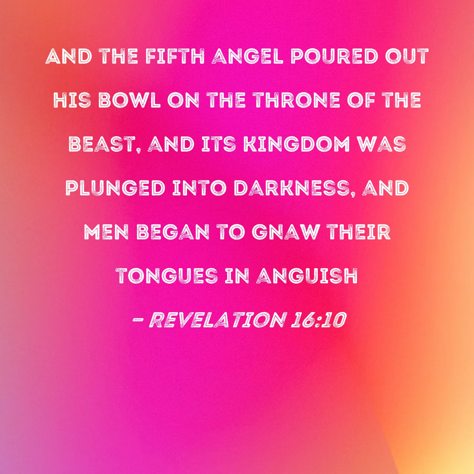 Revelation 16:10 And the fifth angel poured out his bowl on the throne of the beast, and its kingdom was plunged into darkness, and men began to gnaw their tongues in anguish