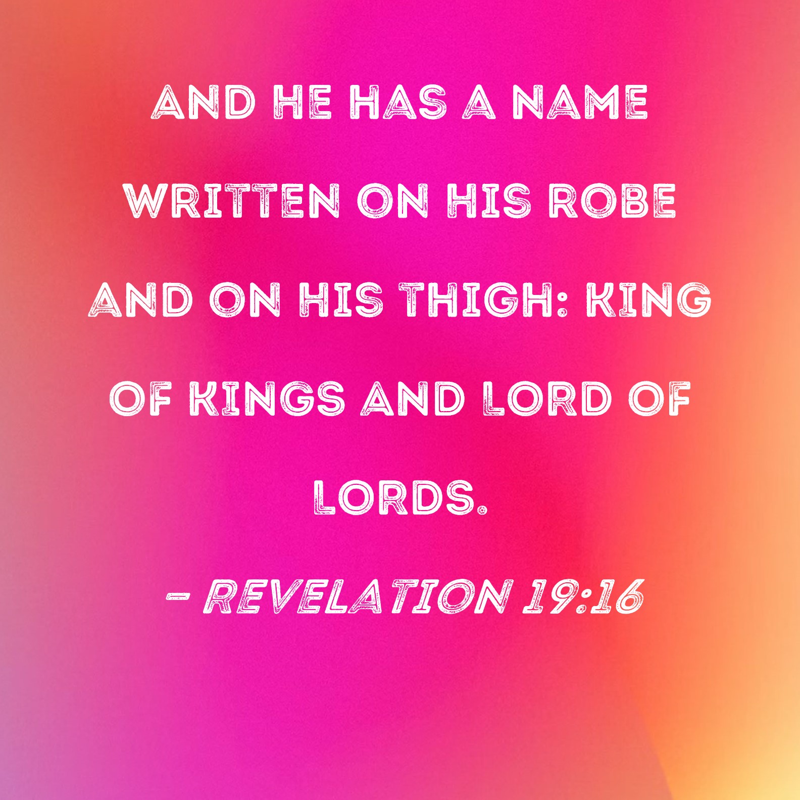 Revelation 19:16 And He has a name written on His robe and on His thigh: KING OF KINGS AND LORD OF LORDS.