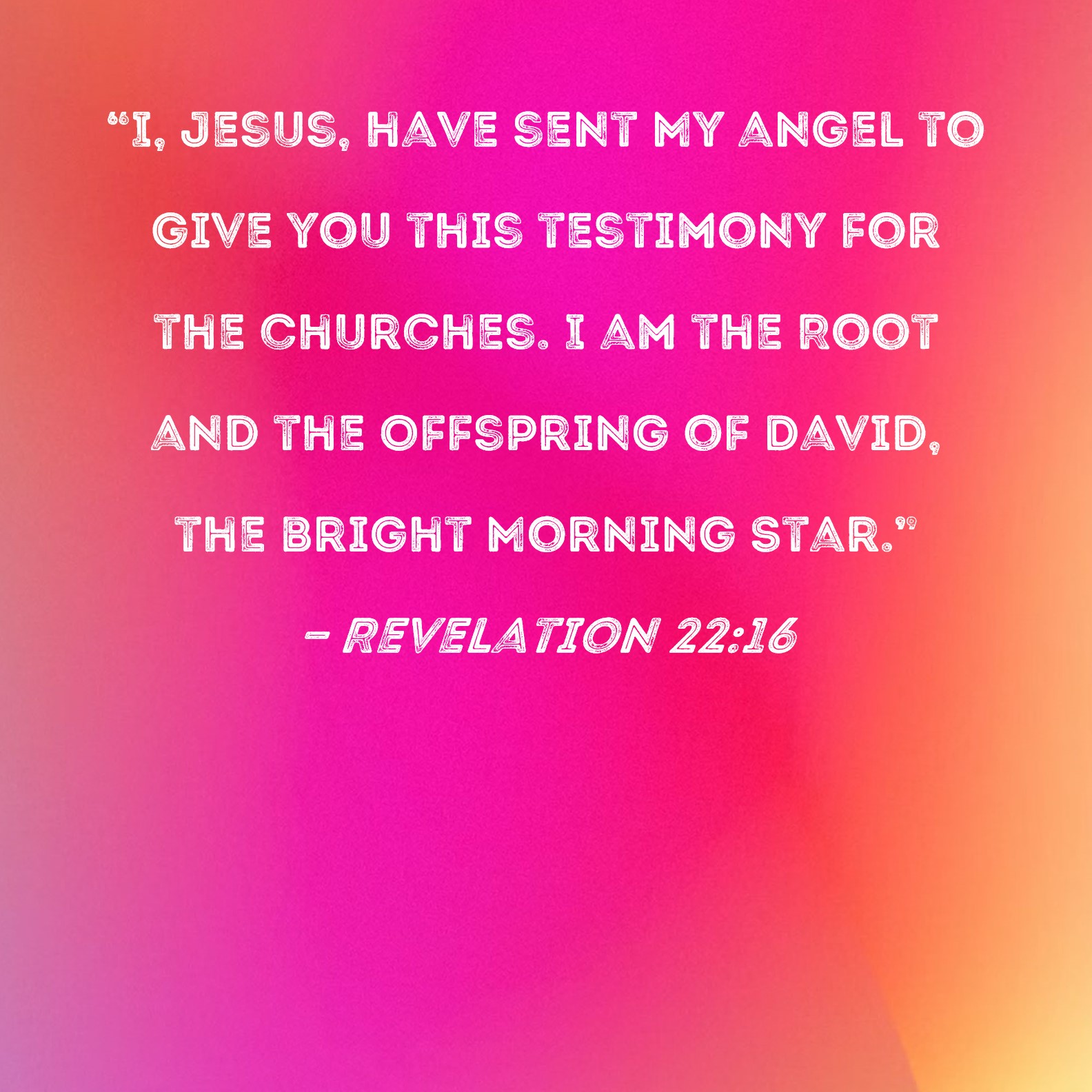 Revelation 22:16 "I, Jesus, have sent My angel to give you this testimony for the churches. I am the Root and the Offspring of David, the bright Morning Star."