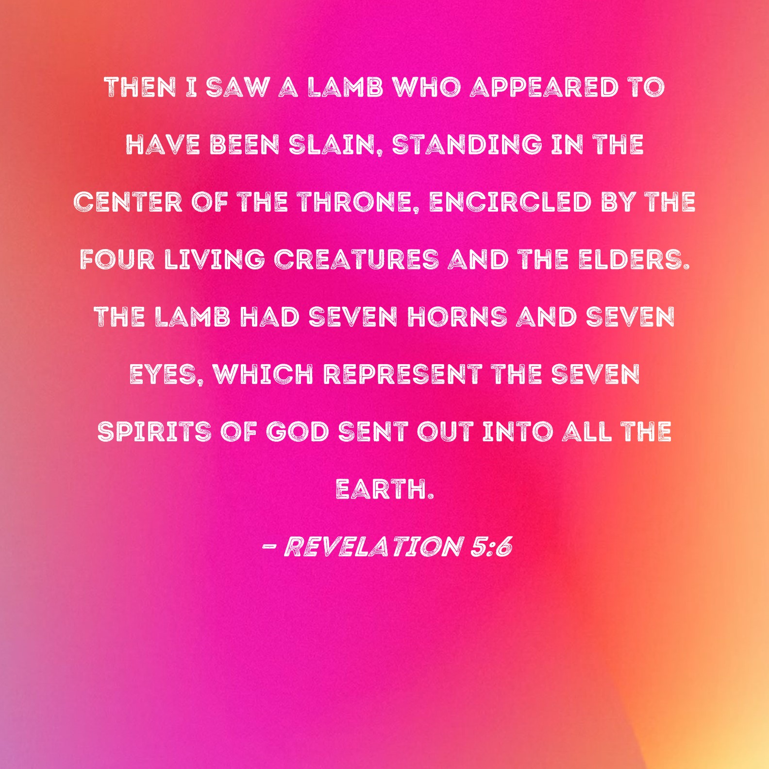 Revelation 5:6 Then I saw a Lamb who appeared to have been slain, standing in the center of the throne, encircled by the four living creatures and the elders. The Lamb had seven horns and seven eyes, which represent the seven Spirits of God sent out into all the earth.