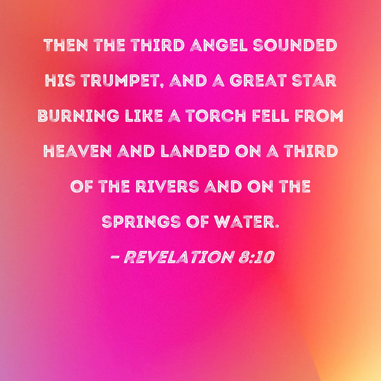 Revelation 8:10 Then the third angel sounded his trumpet, and a great star burning like a torch fell from heaven and landed on a third of the rivers and on the springs of water.