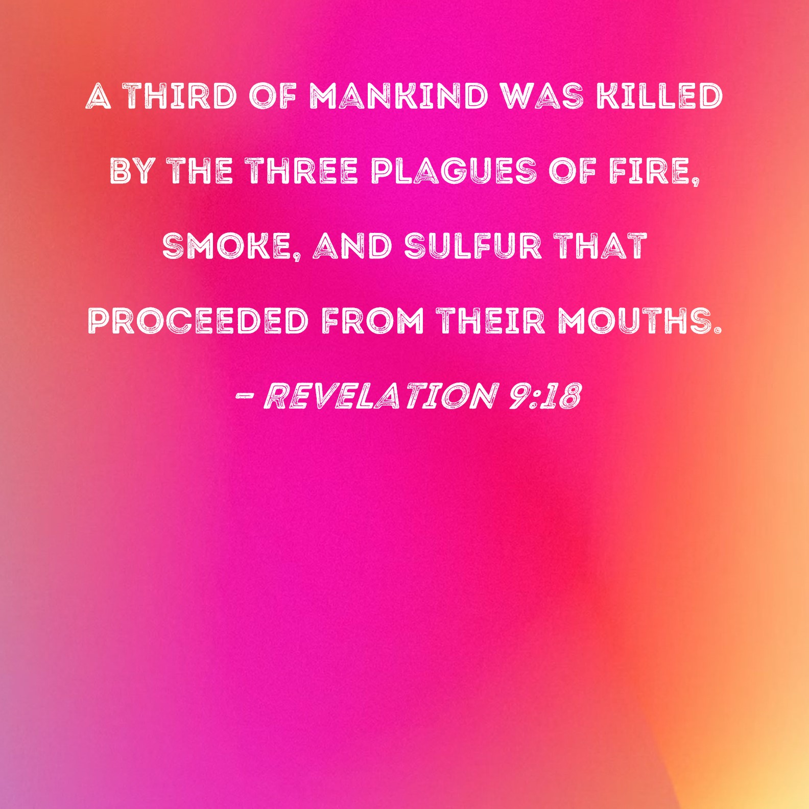 Revelation 9:18 A third of mankind was killed by the three plagues of fire, smoke, and sulfur that proceeded from their mouths.