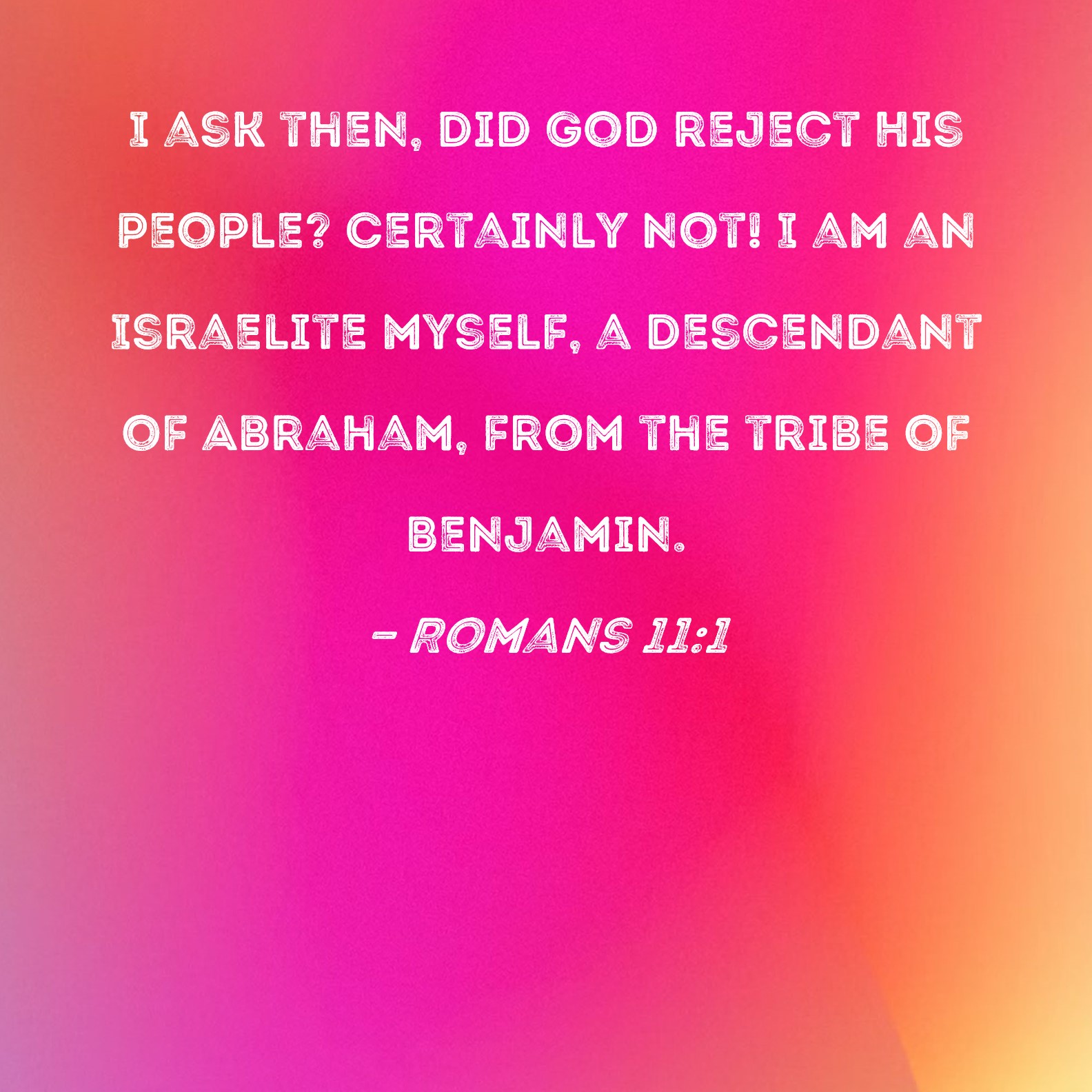 Romans 11:1 I ask then, did God reject His people? Certainly not! I am an Israelite myself, a descendant of Abraham, from the tribe of Benjamin.