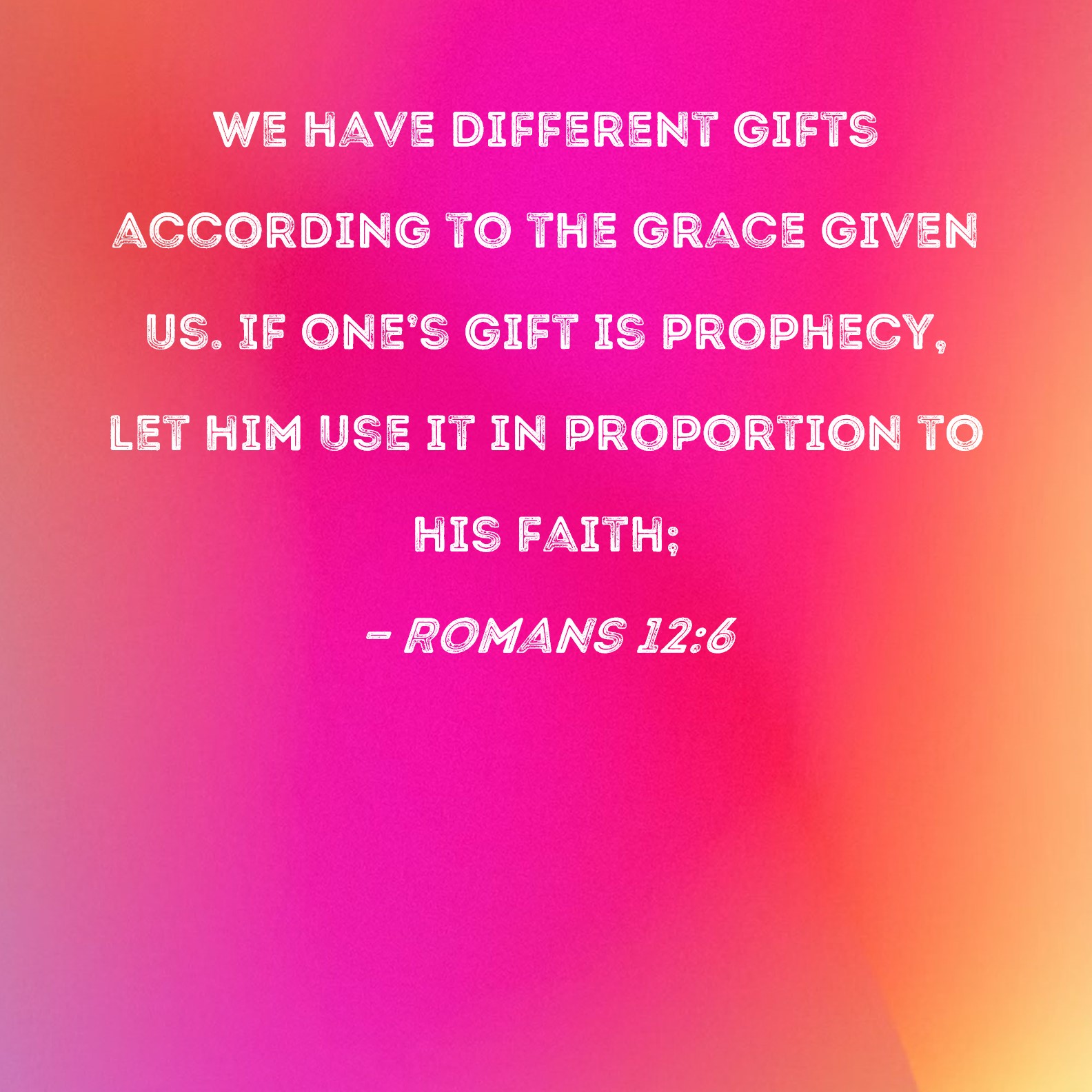 Romans 12:6 We have different gifts according to the grace given us. If one's gift is prophecy, let him use it in proportion to his faith;