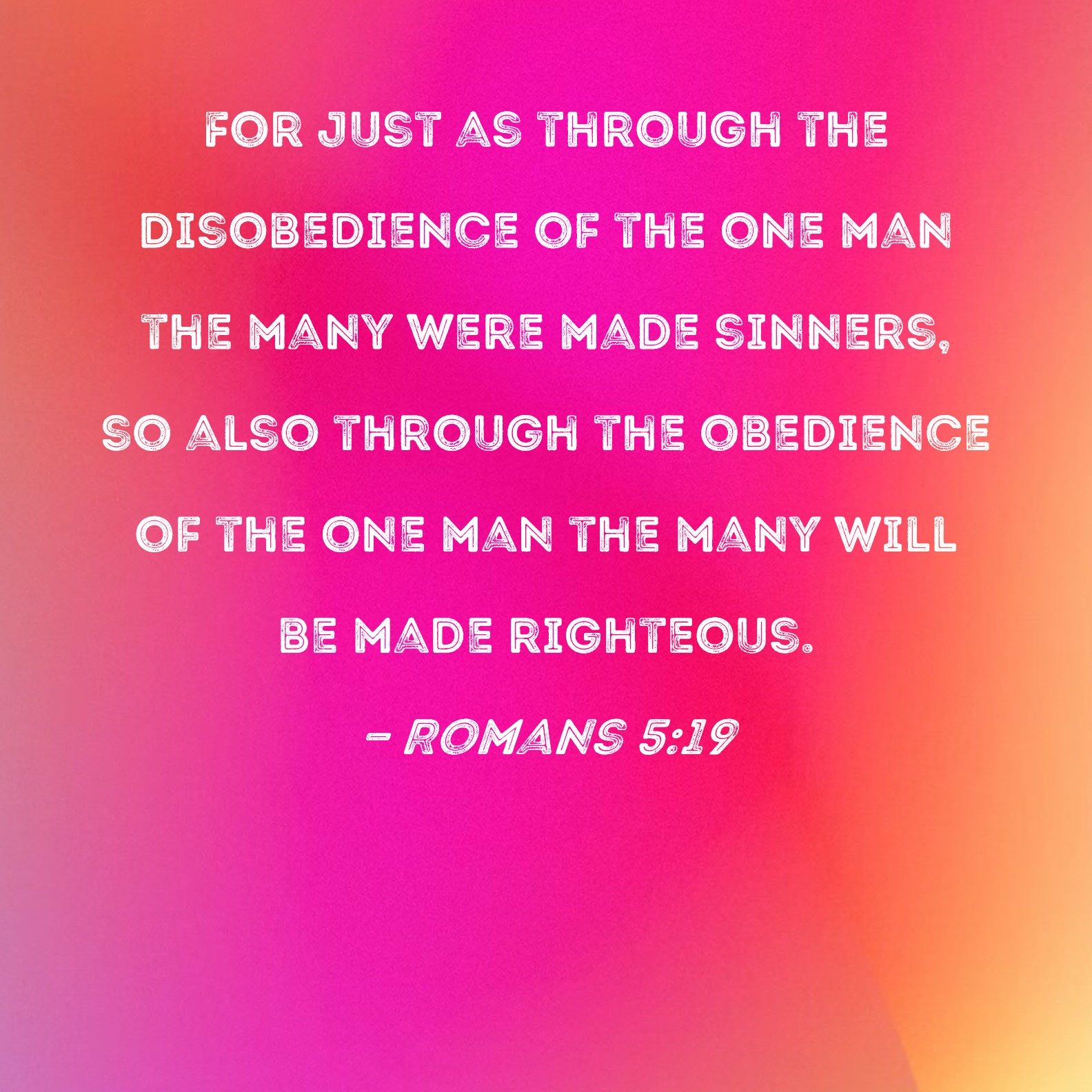Romans 5:19 For just as through the disobedience of the one man the many were made sinners, so also through the obedience of the one man the many will be made righteous.