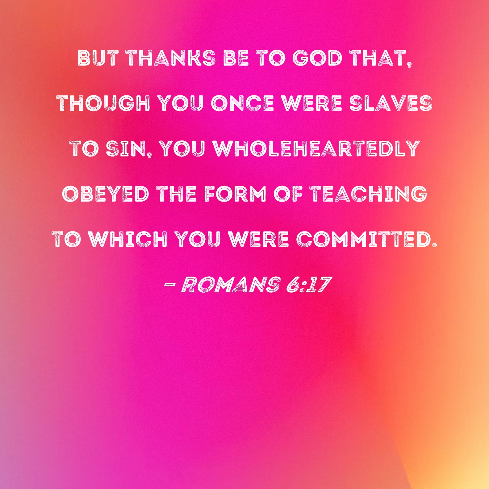 Romans 6:17 But thanks be to God that, though you once were slaves to sin, you wholeheartedly obeyed the form of teaching to which you were committed.