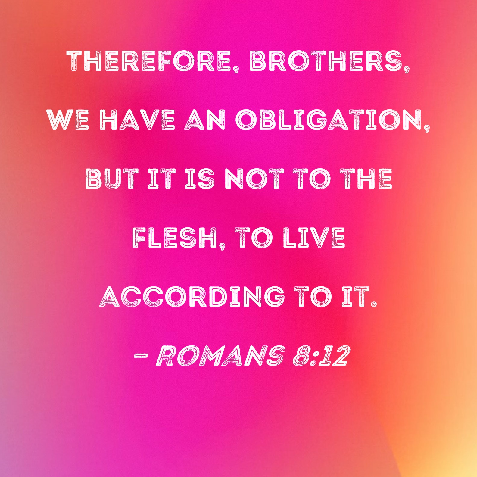 Romans 8:12 Therefore, brothers, we have an obligation, but it is not to the flesh, to live according to it.