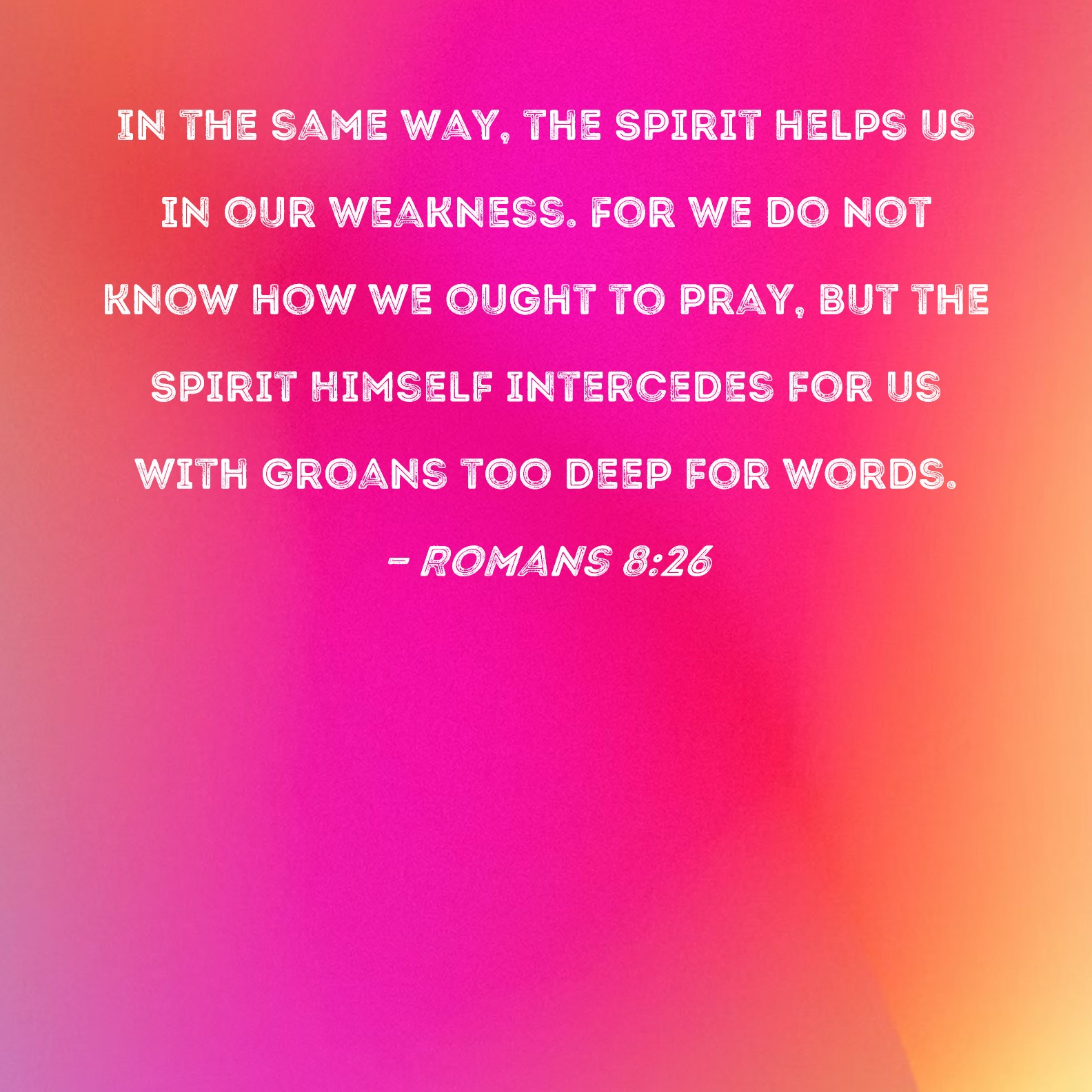 Romans 8:26 In the same way, the Spirit helps us in our weakness. For we do not know how we ought to pray, but the Spirit Himself intercedes for us with groans too deep for words.