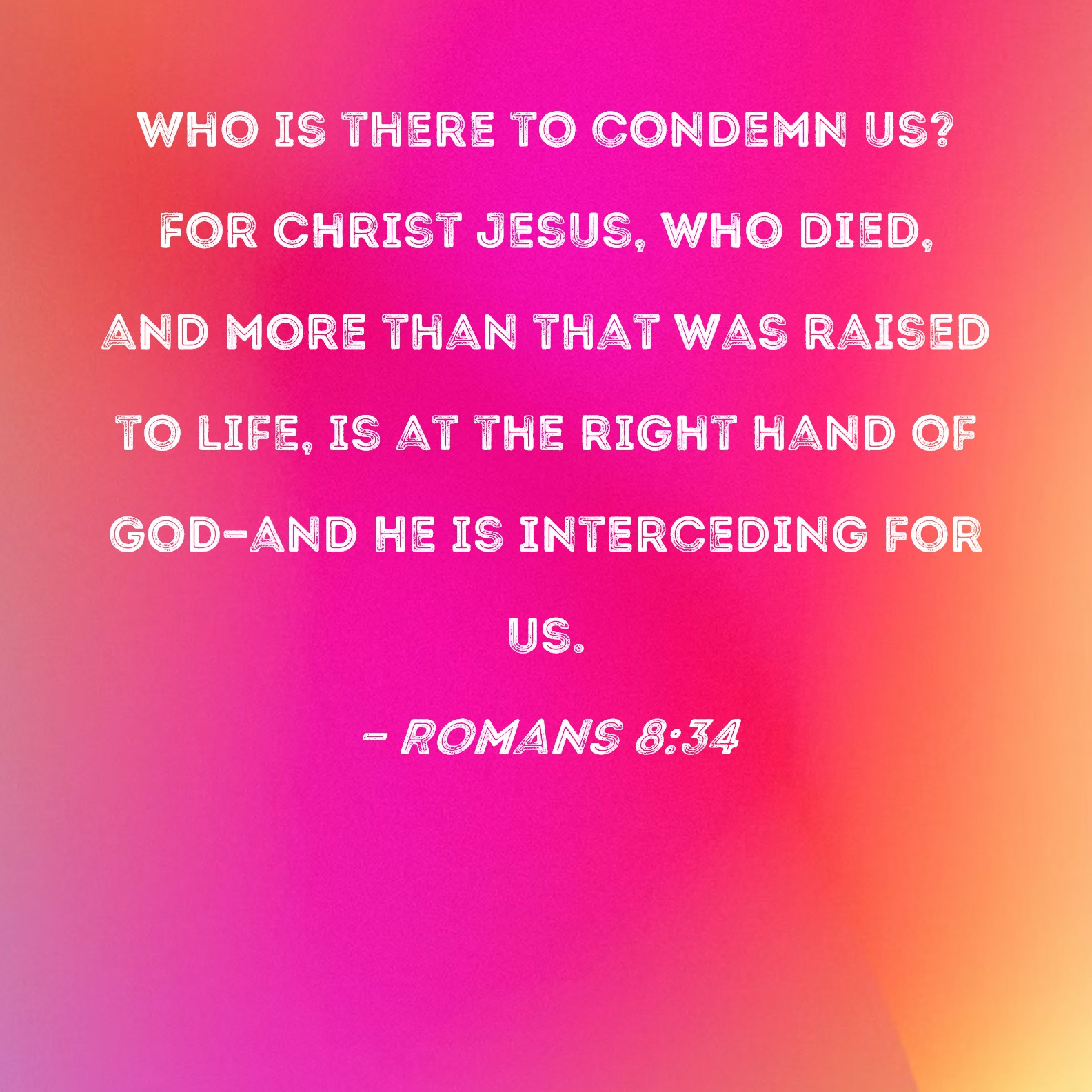 Romans 8:34 Who is there to condemn us? For Christ Jesus, who died, and more than that was raised to life, is at the right hand of God--and He is interceding for us.