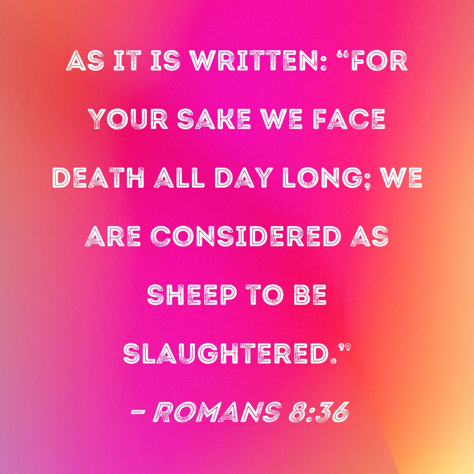 Romans 8:36 As it is written: "For Your sake we face death all day long; we are considered as sheep to be slaughtered."