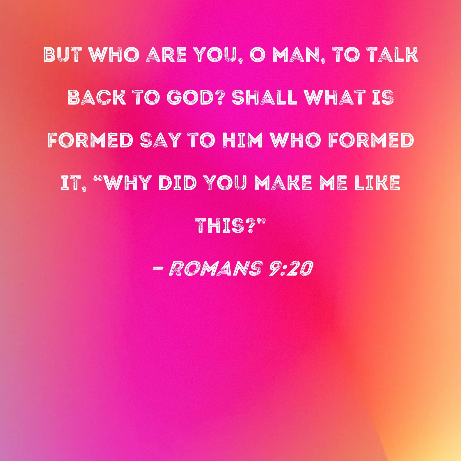 Romans 9:20 But who are you, O man, to talk back to God? Shall what is formed say to Him who formed it, "Why did You make me like this?"