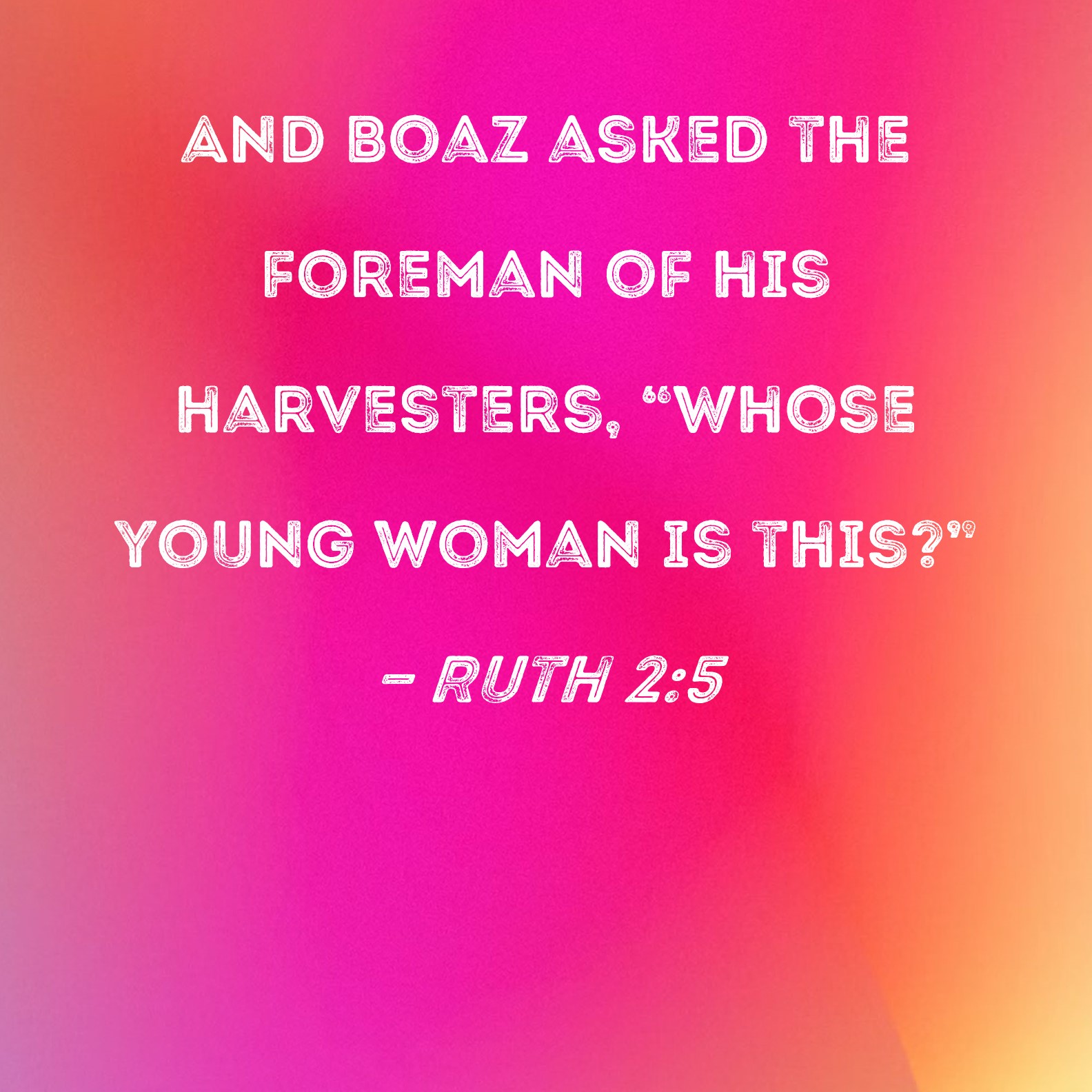 And Boaz asked the foreman of his harvesters, "Whose young woman is this?"