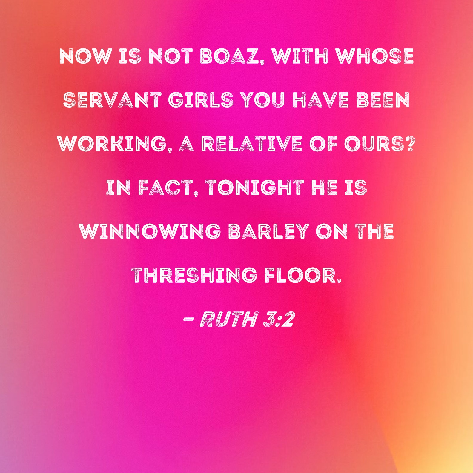 Ruth 3:2 Now is not Boaz, with whose servant girls you have been working, a relative of ours? In fact, tonight he is winnowing barley on the threshing floor.