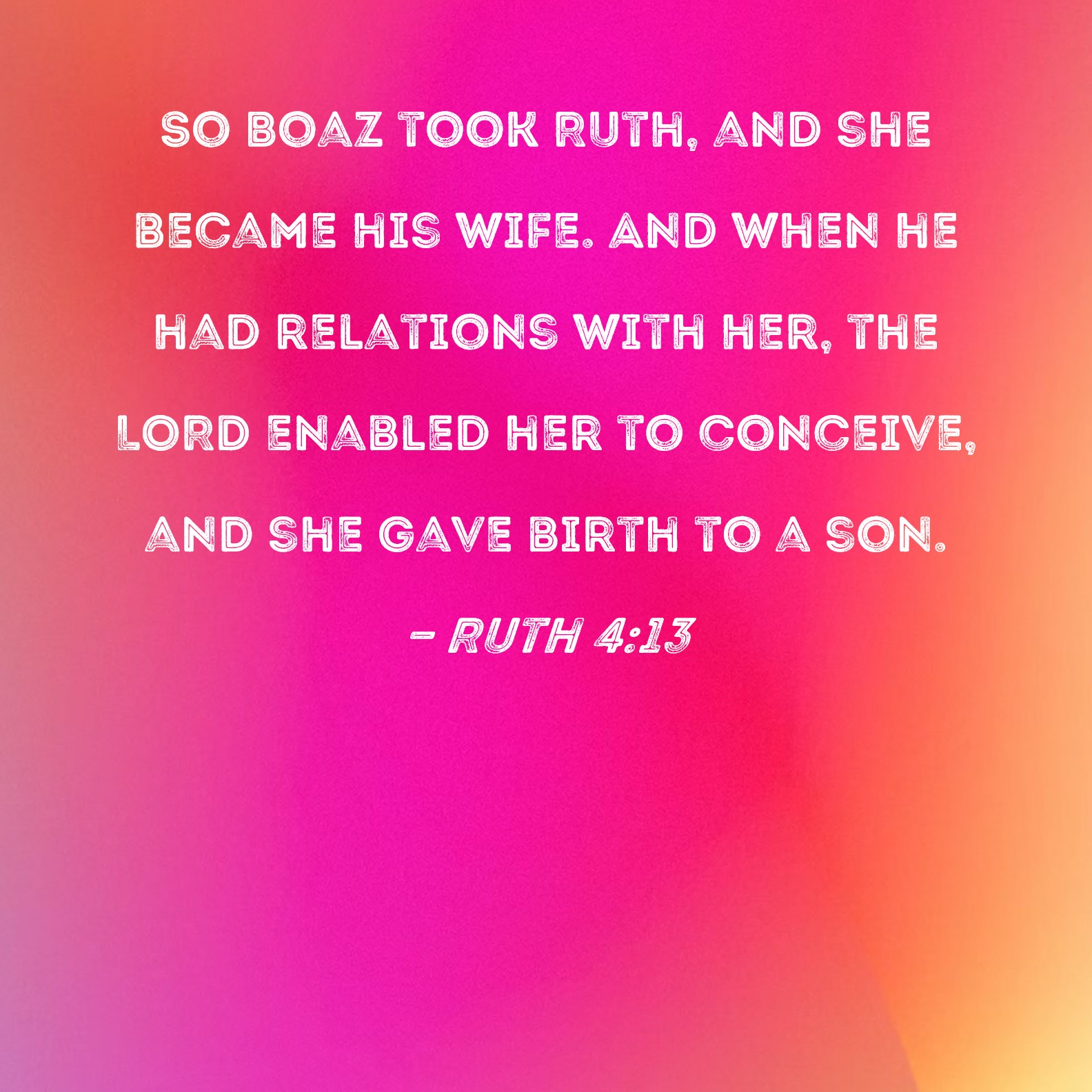 Ruth 4:13 So Boaz took Ruth, and she became his wife. And when he had relations with her, the LORD enabled her to conceive, and she gave birth to a son.
