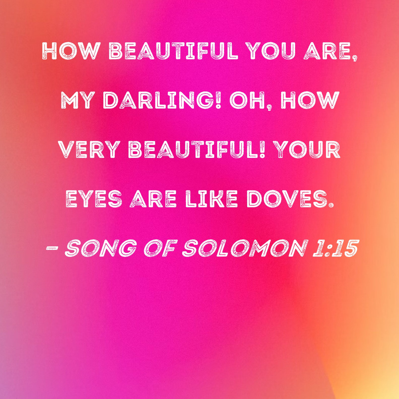 Song of Solomon 1:15 How beautiful you are, my darling! Oh, how very beautiful! Your eyes are like doves.