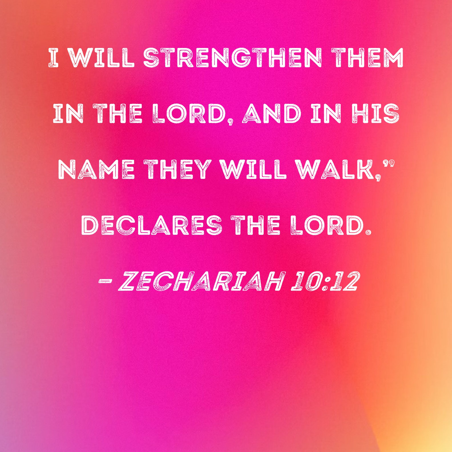 Zechariah 10:12 I will strengthen them in the LORD, and in His name they will walk," declares the LORD.