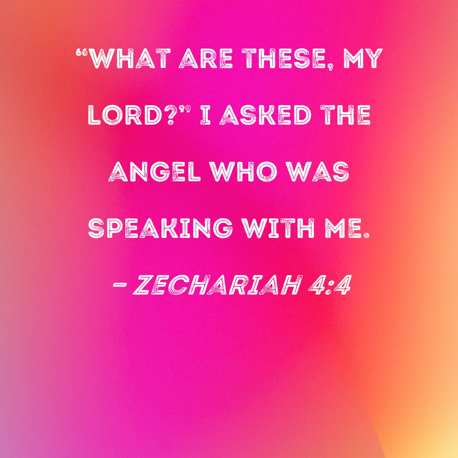 Zechariah 4:4 "What are these, my lord?" I asked the angel who was speaking with me.