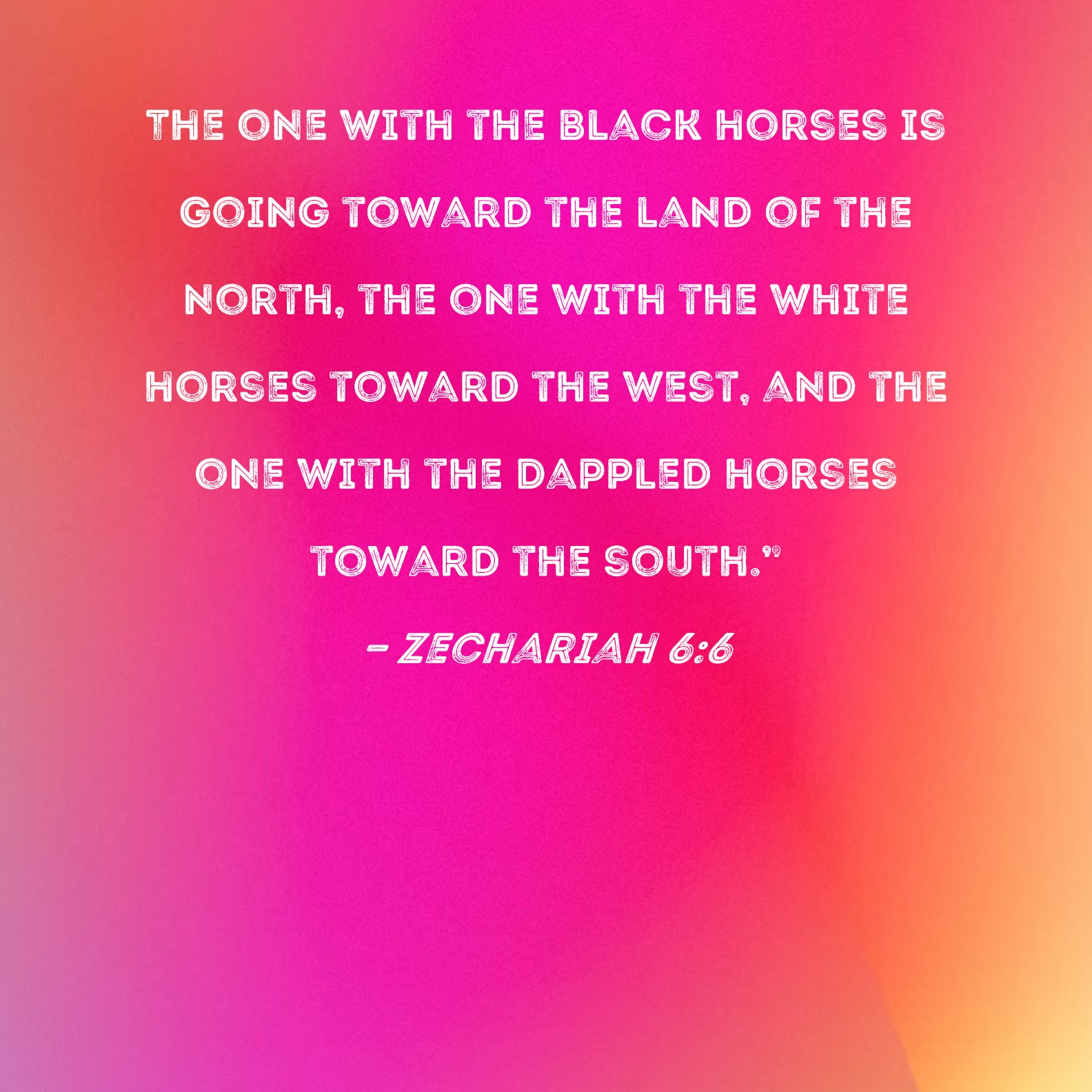 The one with the black horses is going toward the land of the north, the one with the white horses toward the west, and the one with the dappled horses toward the south."