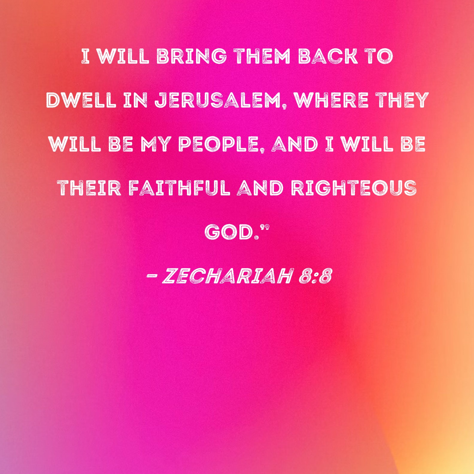 Zechariah 8:8 I will bring them back to dwell in Jerusalem, where they will be My people, and I will be their faithful and righteous God."