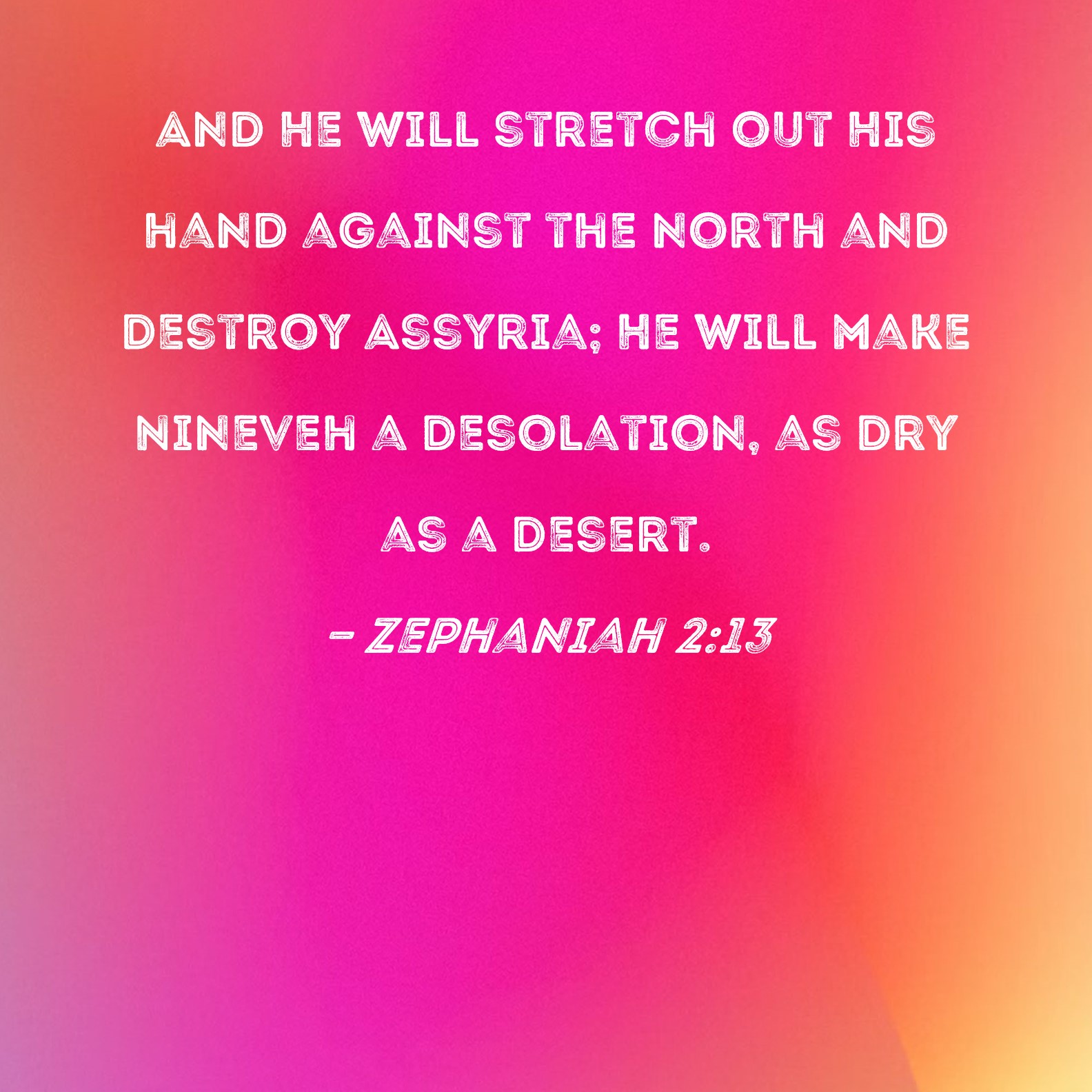 Zephaniah 2:13 And He will stretch out His hand against the north and destroy Assyria; He will make Nineveh a desolation, as dry as a desert.