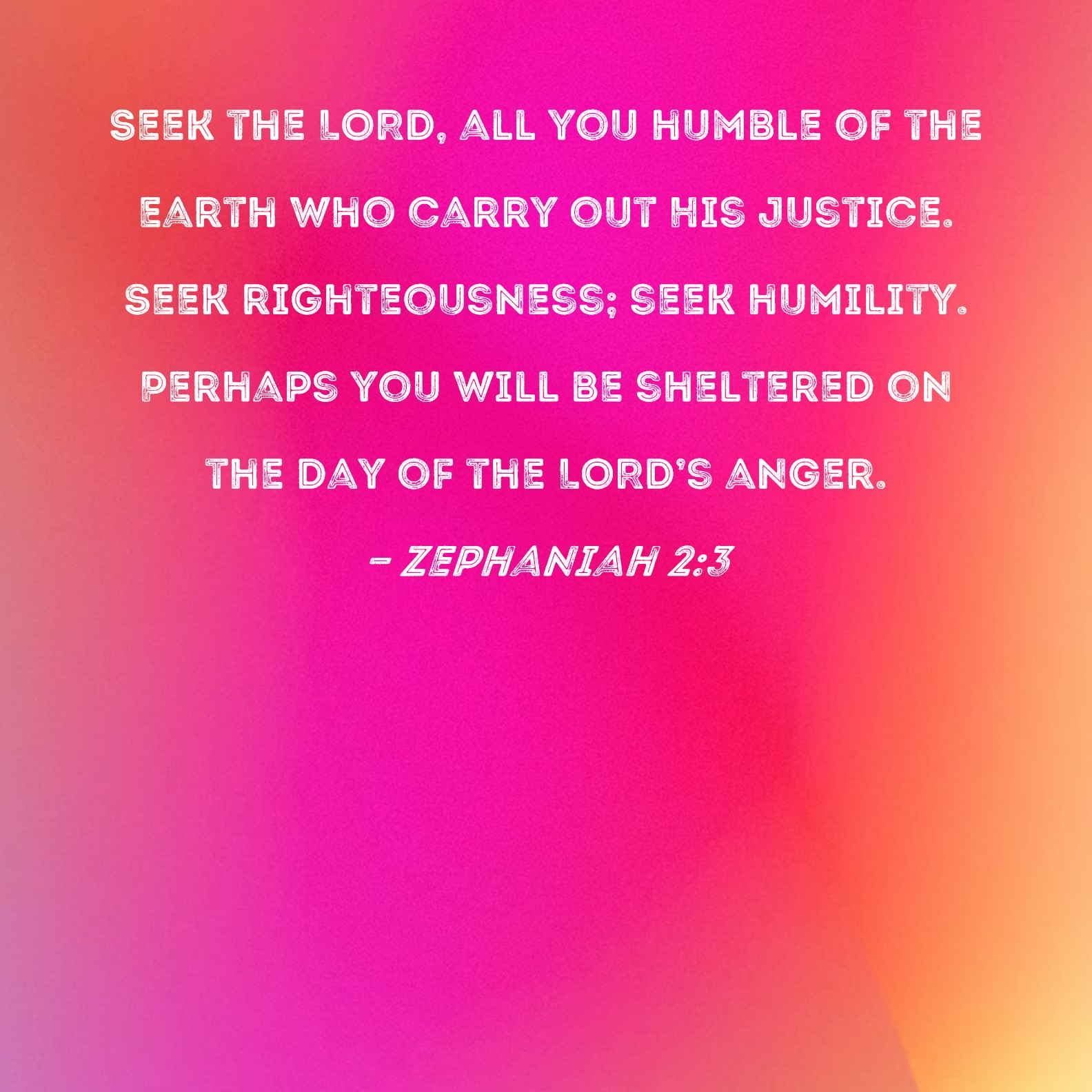 Zephaniah 2:3 Seek the LORD, all you humble of the earth who carry out His justice. Seek righteousness; seek humility. Perhaps you will be sheltered on the day of the LORD's anger.