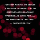 together with all the details of his reign, his might, and the circumstances that came upon him and Israel and all the kingdoms of the lands.