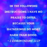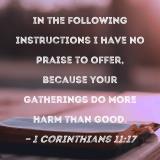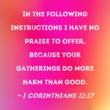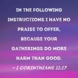 In the following instructions I have no praise to offer, because your gatherings do more harm than good.