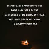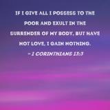 If I give all I possess to the poor and exult in the surrender of my body, but have not love, I gain nothing.