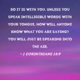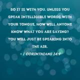 So it is with you. Unless you speak intelligible words with your tongue, how will anyone know what you are saying? You will just be speaking into the air.