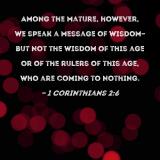 Among the mature, however, we speak a message of wisdom--but not the wisdom of this age or of the rulers of this age, who are coming to nothing.